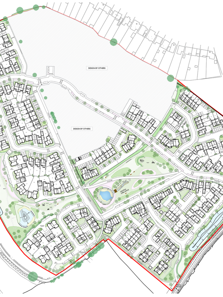 Providing design alterations to original landscape plans for sales & marketing suite, show homes & site entrance road.